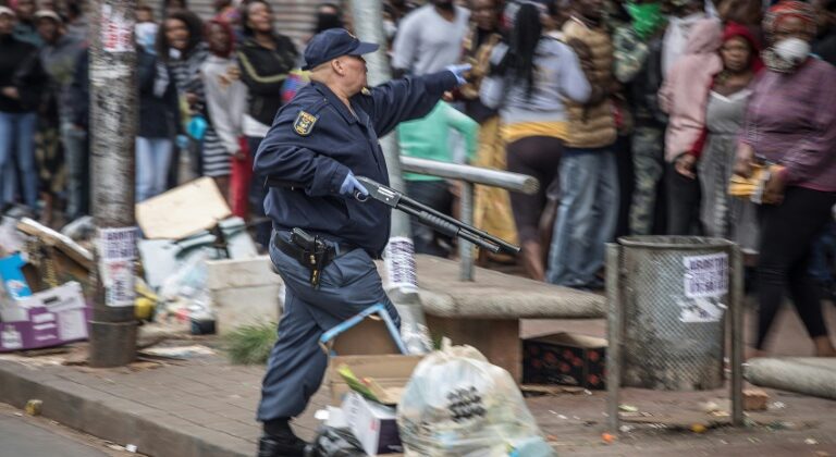 La polizia sudafricana, ieri mattina, ha sparato proiettili di gomma per disperdere centinaia di persone che si affollavano davanti a un negozio di Johannesburg, in violazione del confinamento imposto dall’epidemia di coronavirus.