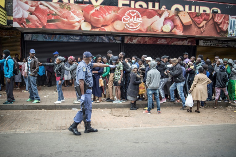 I clienti, circa 300 tra cui donne e bambini, avevano fatto la fila dalla mattina davanti a un supermercato nella zona privata di Yeoville, nel centro della più grande città del paese, senza rispettare le istruzioni a distanza.