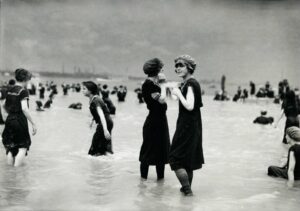 Con il tempo il costume si accorcia, si organizzano le vacanza al mare a Rimini, Viareggio, Venezia, Fiuggi e tra il 1920 e 1930 appaiono le cuffie, i costumi atletici, con i gonnellini, smanicati e più scollati. I sarti si dedicano a questo capo, creando molti modelli con maglia lunga, calzoncini, cinturino in vita e tessuti come il lattice e il nylon, avvicinandosi all’idea che abbiamo oggi del costume.