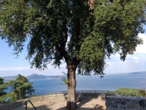 Intorno al castello si possono ammirare i tanti vicoletti del borgo antico, in parte appoggiati alle spalle del maniero. Le case tipiche, i piccoli portoni, le sedie vicino alla porta, che indicano il proseguimento di un’antica socialità ancora vissuta. E le strette viuzze in pietra portano per magia come le finestre del castello sulla vista del lago, ma in uno scorcio dominato da un grande albero, che troneggia fiero.