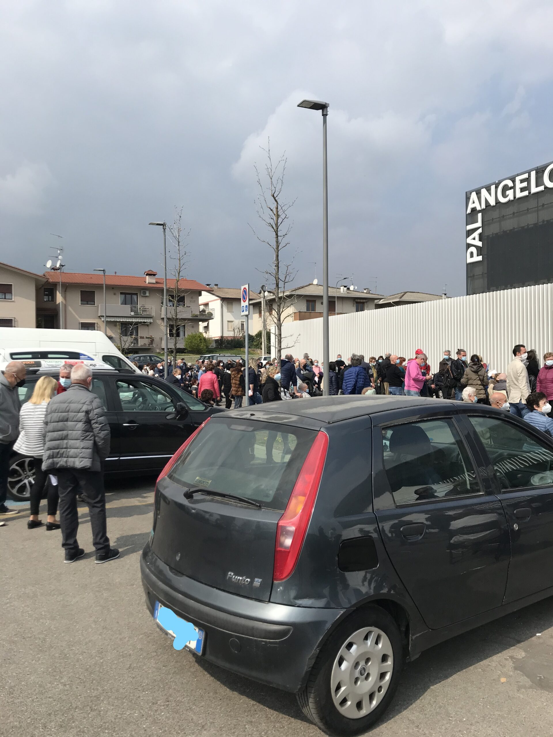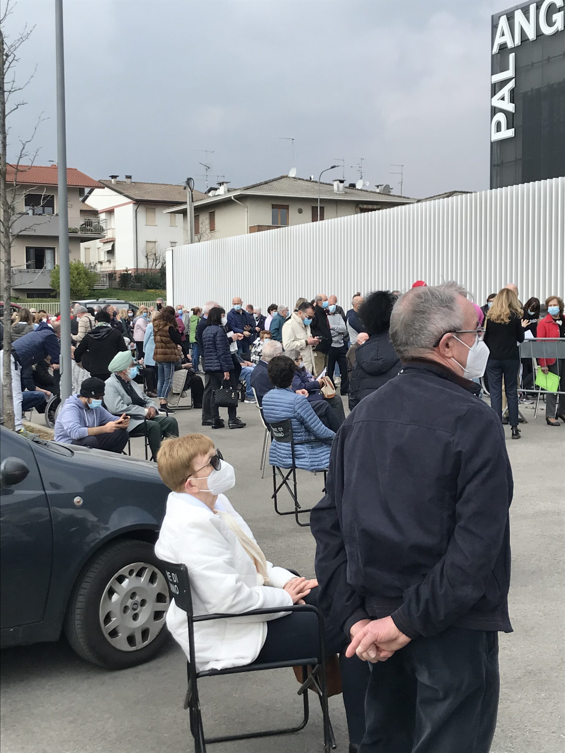 Grande affluenza di persone per la vaccinazione anti Covid al Pal Angelo Sinico di Trissino in provincia di Vicenza, per lo più anziani che già dalle 09:00 della Domenica delle Palme era in fila ad aspettare la somministrazione del vaccino.