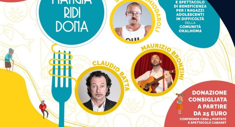 La cena, preparata proprio dai ragazzi ospiti della comunità del laboratorio educativo La Cucina di Albert, si è conclusa con lo spettacolo proposto dalla Nazionale Italiana Comici e che ha visto esibirsi i noti comici di Zelig, Claudio Batta, Stefano Chiodaroli e Maurizio Bronzini.