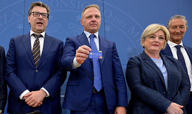 I Ministri Francesco Lollobrigida (Agricoltura, Sovranità Alimentare e Foreste), Giancarlo Giorgetti (Economia e delle Finanze) e Marina Elvira Calderone (Lavoro e Politiche sociali) hanno presentato in conferenza stampa ‘Dedicata a te’, la carta distribuita da Poste italiane attraverso la quale verrà erogato un contributo governativo per l’acquisto di generi alimentari di prima necessità.