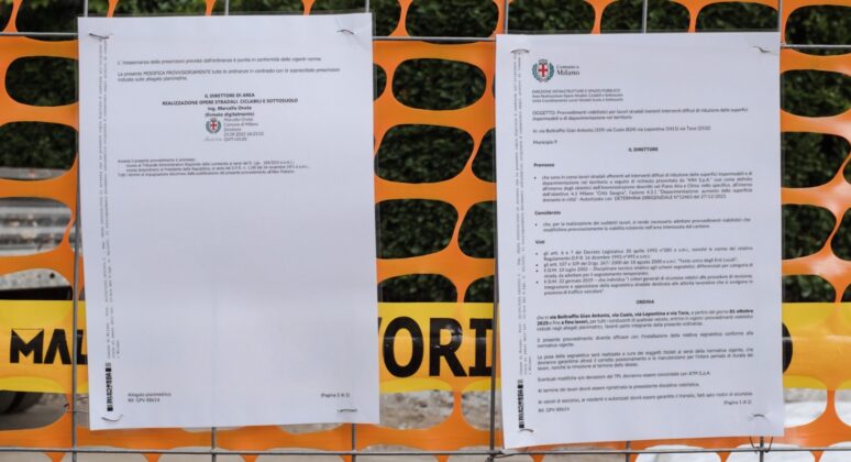 Tenendomi a distanza, al fine di non intralciarne l’operato, riesco comunque a farmi un’idea della situazione: alcuni residenti hanno contattato la locale poiché non sono stati in grado di ottenere informazioni esaustive dagli operai. Noto infatti che ad oggi è stata posizionata, sulla recinzione, solo una copia dell’ordinanza comunale che comunica le variazioni della viabilità nelle vie Toce, Boltraffio, Cusio e Lepontina, riferendosi ad alcuni allegati planimetrici. Del cartello indicante le specifiche del cantiere in corso ancora nessuna traccia, nonostante sia passata quasi una settimana dalla messa in opera dello stesso.