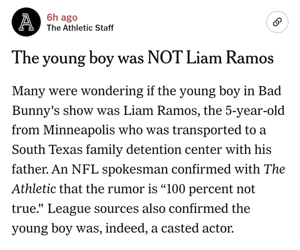 Di sicuro ha fatto parlare il gesto di Bad Bunny di consegnare il suo Grammy Award ad un bambino, che molti hanno indicato come il piccolo trattenuto dall’ICE qualche settimana fa, cosa smentita dalla Lega tramite un loro portavoce, come riportato anche dal New York Times, specificando che si è trattato semplicemente di un attore.