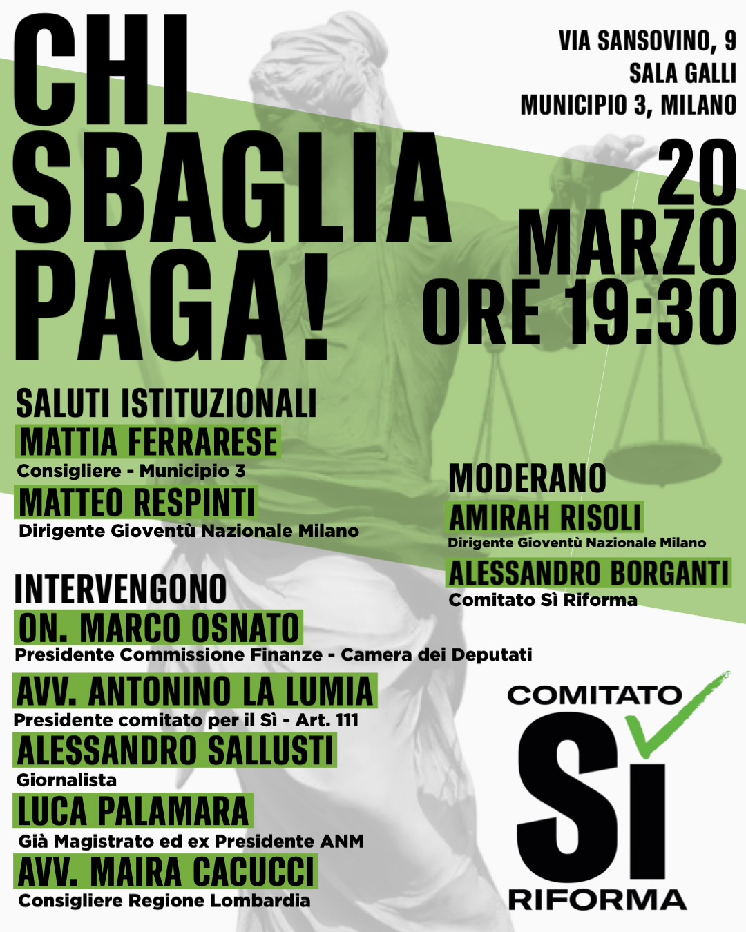TAG: #referendum giustizia, Alessandro Sallusti, chi sbaglia paga, Fratelli d'Italia, Luca Palamara, Matteo Respinti, Mattia Ferrarese, referendum 22 23 Marzo