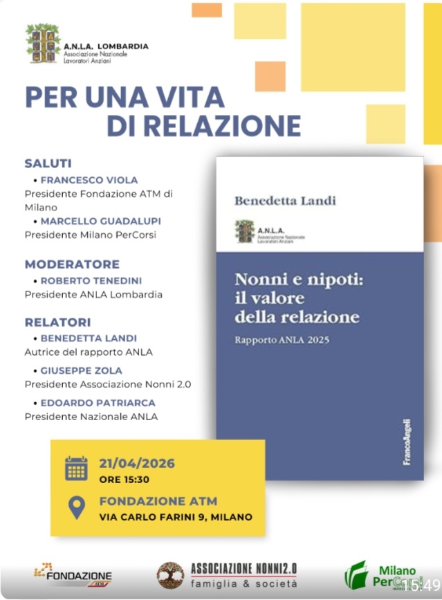 A.N.L.A. Lombardia in collaborazione con FondazioneATM e Milano PerCorsi presenta: “Nonni e nipoti: il valore della relazione. Rapporto ANLA 2025” di Benedetta Landi